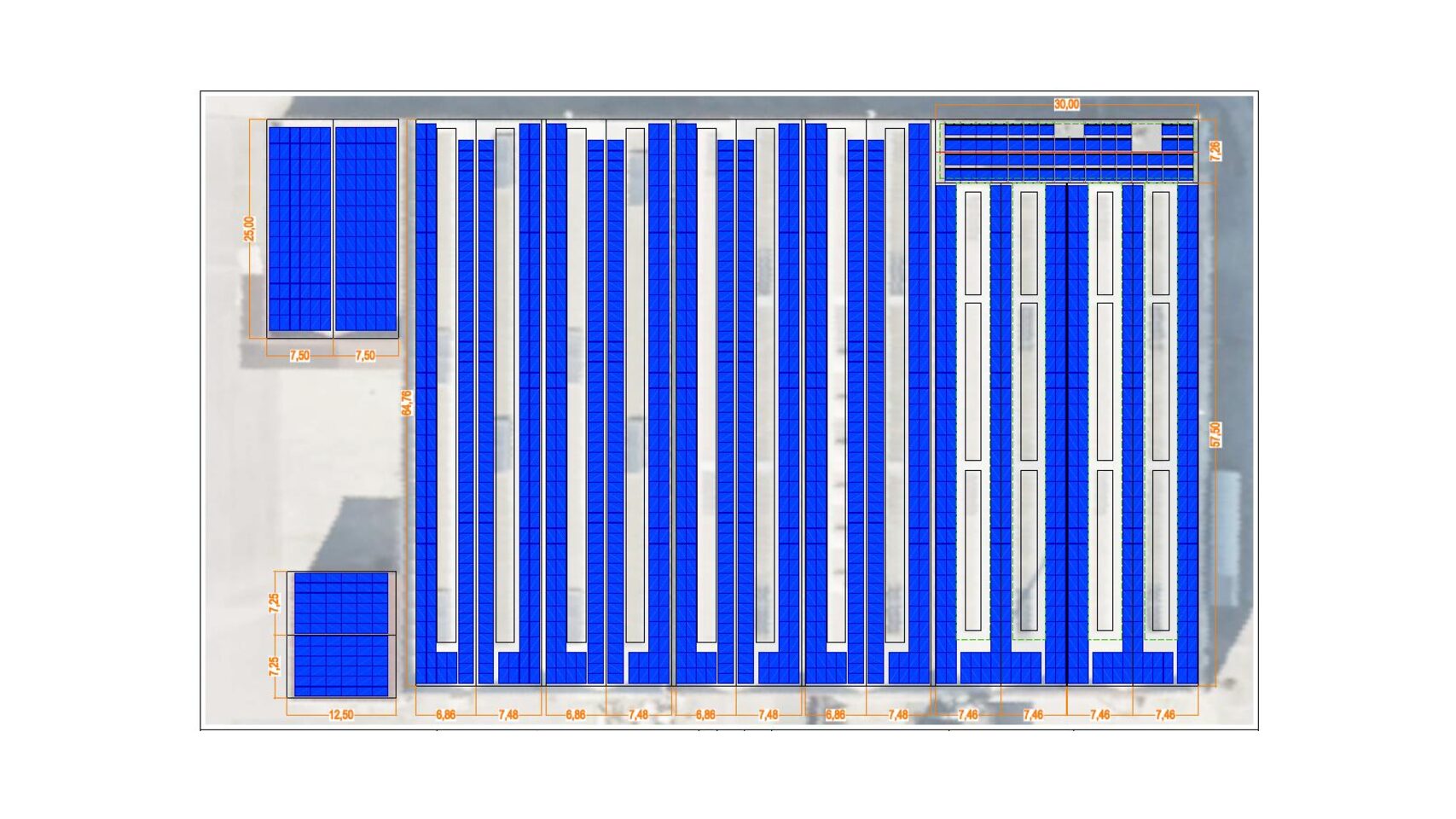 L’impianto fotovoltaico da 670 kWp immette l’energia completamente in rete ed è stato completato in 2 mesi su un tetto piano con montaggio est-ovest, inclusa la realizzazione di una nuova cabina di media tensione